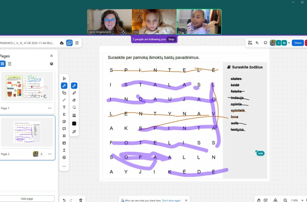 Tema: Kalėdinės dovanos. Mokiniai pasakoja, kokių norėtų dovanų, kaip jos atrodo, ką su jomis veiks. Kalbėjome apie tai, kaip ruošiasi Kalėdoms.